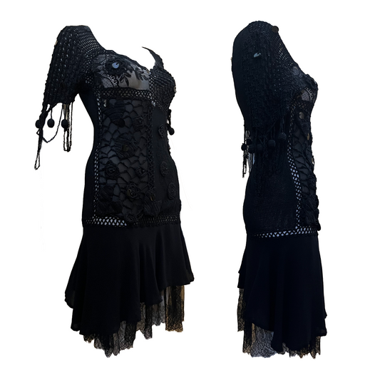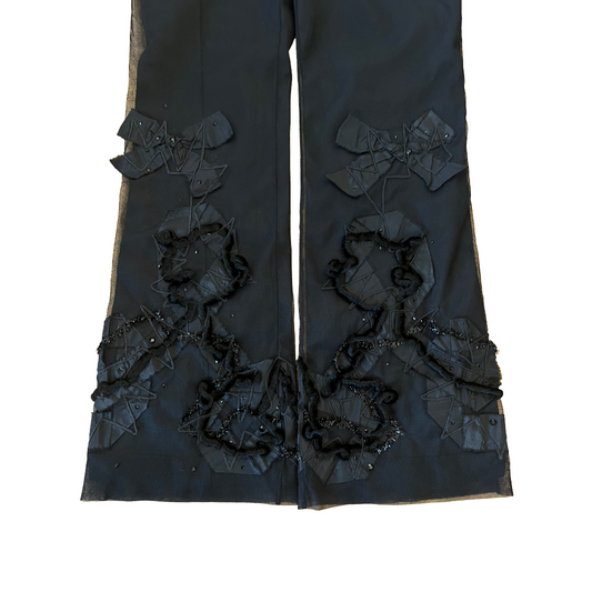 Christian Lacroix 90s Black Embroidered Tulle Trousers