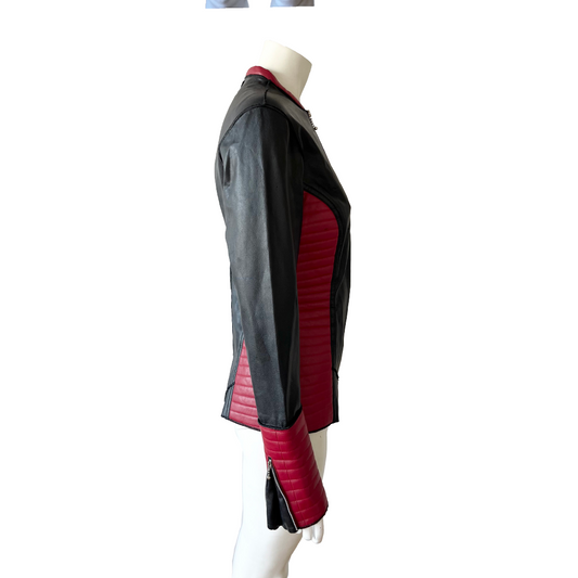 JEAN COLONNA 90s Faux Leather Black & Red Moto Jacket