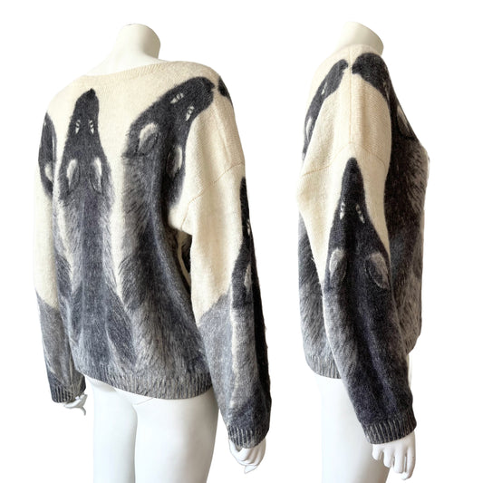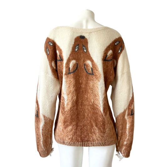 KRIZIA 80s Fox Sole Print Cream Angora Sweater