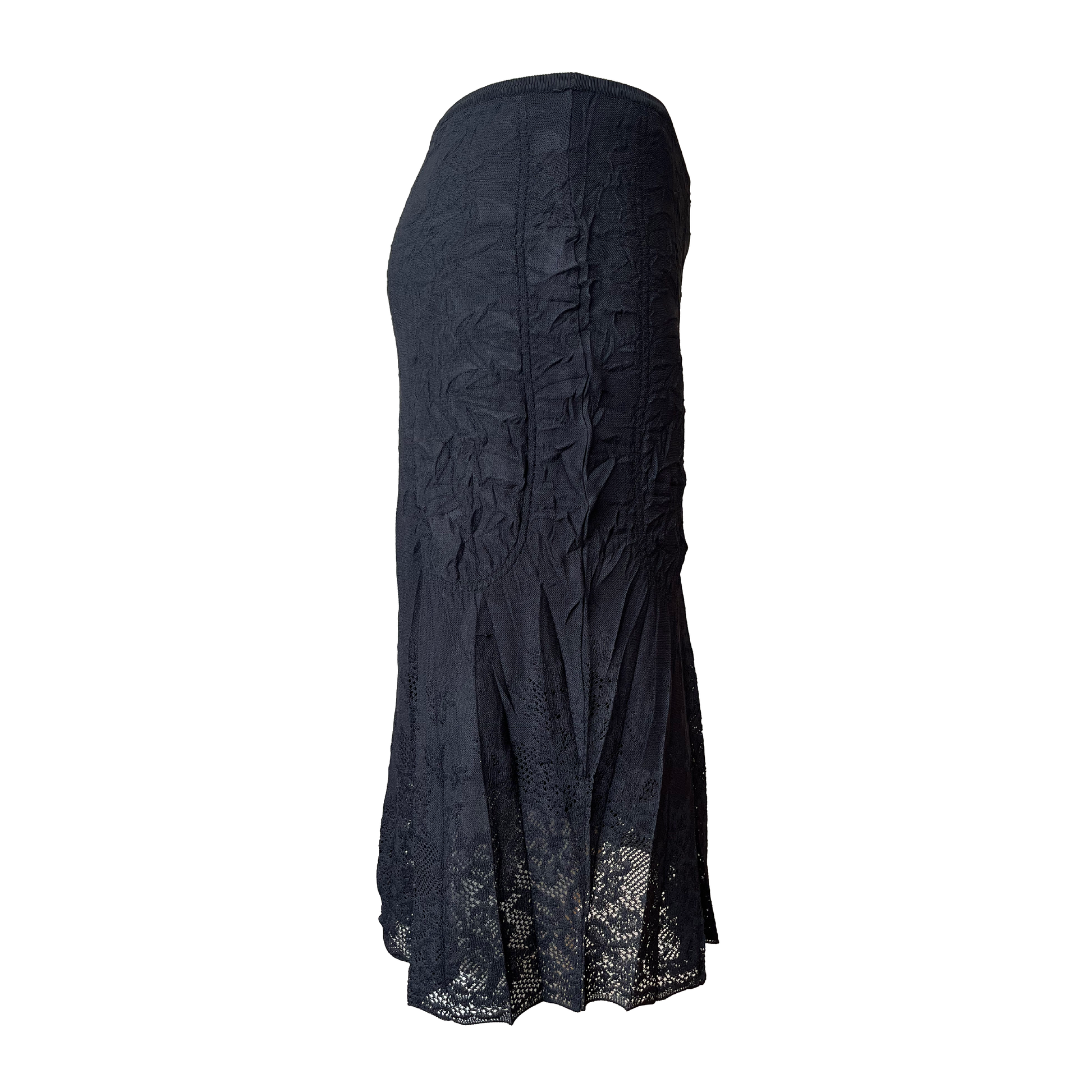 A beautifully preserved piece from Galliano’s 2006 era, featuring his signature crushed texture and soft, sculpted pleating that opens into delicate lacework at the hem