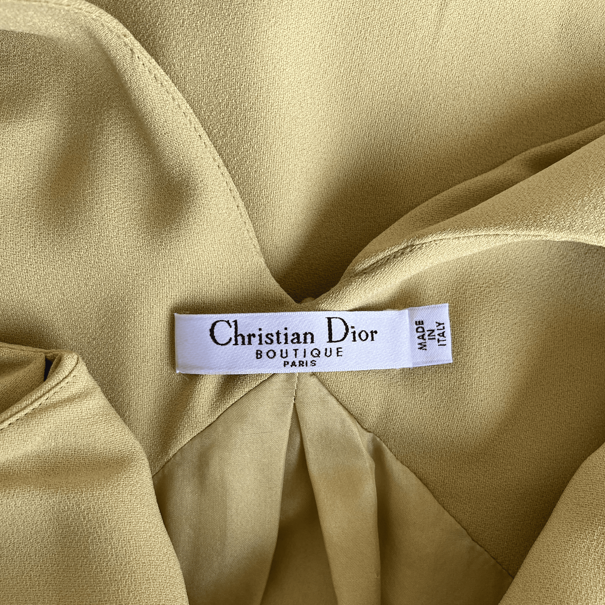 A classic Galliano silhouette with front and back knot draping — elegant, fluid, and unmistakably from this era of Dior