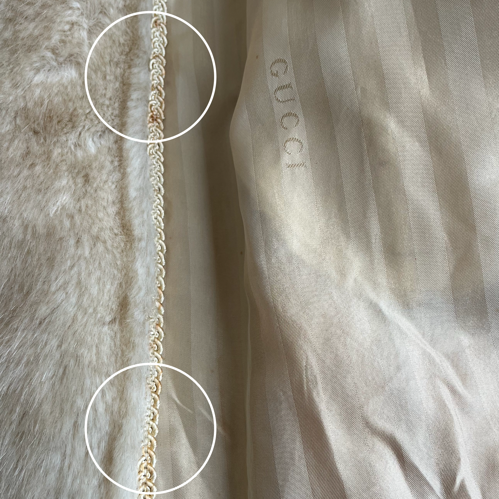 Condition: Very good overall — outer fur remains pristine and soft. Some visible marks and wear on the lining (particularly at the armholes and piping) A professional dry clean is recommended