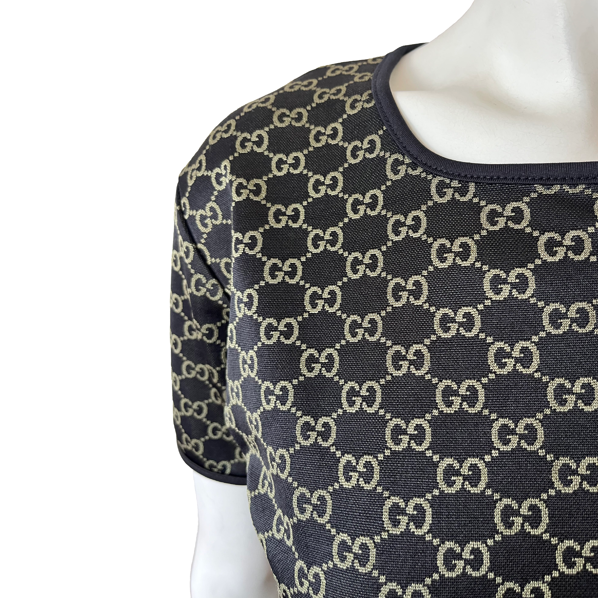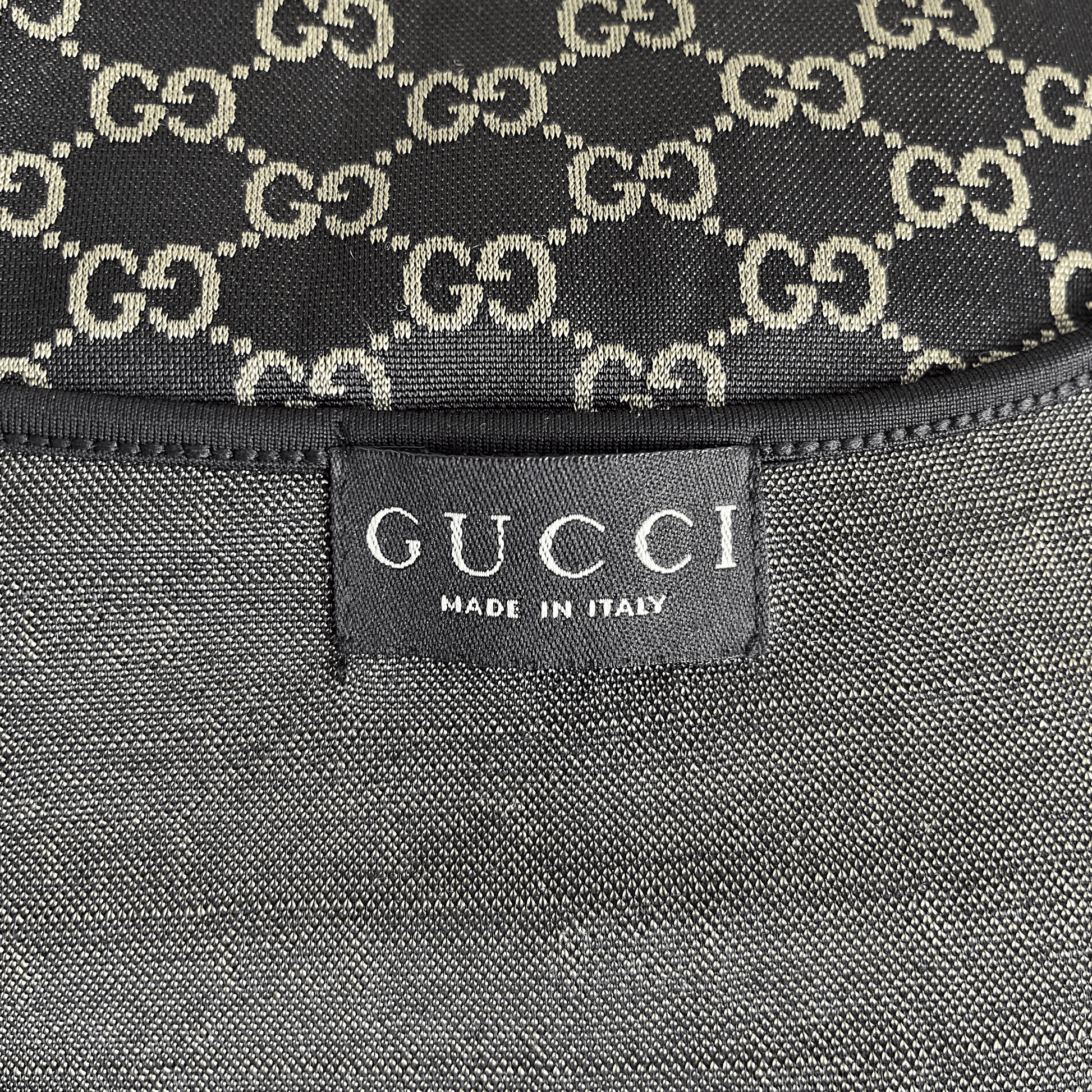 The gold-on-black GG jacquard is executed in a dense, sculptural knit that holds its form while sitting close to the body