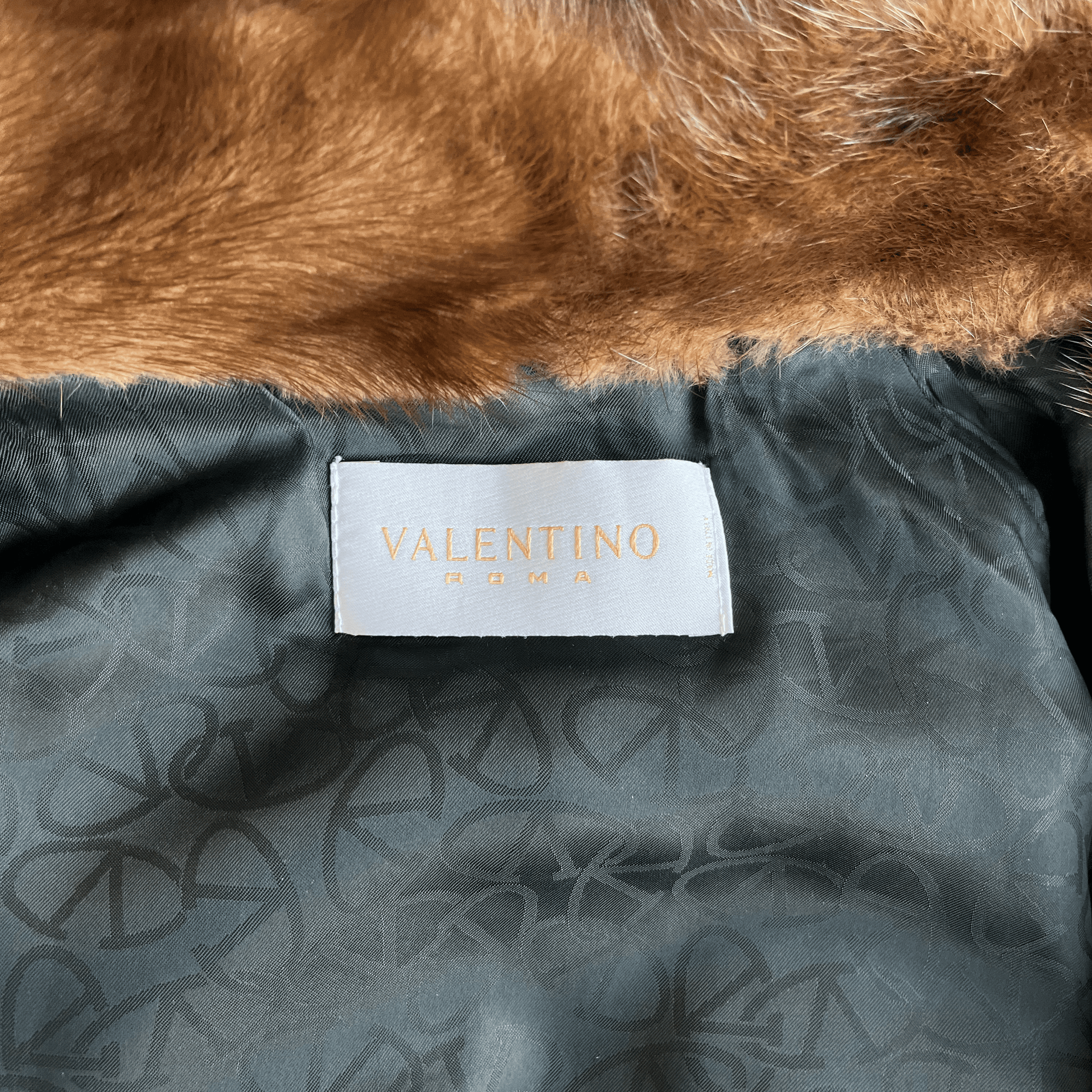 A rare Valentino Roma piece featuring luxurious 100% mink fur trim along the collar and cuffs